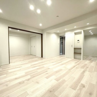 お部屋は新築の1LDK、角部屋タイプ。 玄関を開けると、まだ誰も住んでいない清潔感のある空間が広がり、新生活への期待が自然と高まります。 12.1帖のリビングはゆとりある広さで、ソファやダイニングテーブルを置いても動線をしっかり確保できそうです。 角部屋ならではの開放感があり、窓から入る光が空間をやわらかく包み込みます。 カウンターキッチンはリビングを見渡せる設計で、料理をしながらテレビを見たり、家族やパートナーと会話を楽しんだりできる距離感が魅力です。 都市ガス仕様のため光熱費を抑えやすく、家計にもやさしい印象です。調理スペースも確保されており、自炊を続けたい方にも扱いやすい設備と感じました。 洋室5帖は寝室として十分な広さがあり、ベッドを配置しても圧迫感を感じにくい設計です。 リビングと空間を分けられることで、生活にメリハリが生まれます。収納スペースも備わっており、衣類や季節物を整理しやすく、室内をすっきり保ちやすい点も嬉しいポイントです。 水まわりには洗髪洗面化粧台があり、朝の身支度もスムーズ。バス・トイレ別で室内に洗濯機置場があるため、家事動線も整いやすい間取りです。